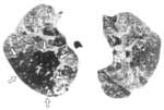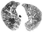Следует отметить два обстоятельства. Во-первых, диффузная эмфизема может быть врожденной, связанной с дефицитом протеаз и ингибиторов протеаз, в частности альфа-1-антитрипсина. Подобная аномалия встречается менее чем у 1% больных диффузной эмфиземой, развивается рано и сопровождается рядом других ненормальностей, в том числе нарушением функции печени. Во-вторых, наличие диффузного вздутия легких не исключает возникновения булл, а также крупных эмфизематозных пузырей, преимущественно в нижних отделах легких. На это необходимо указать в связи с целесообразностью в отдельных случаях оперативных вмешательств - хирургической редукции легочных объемов.
