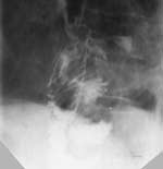 Следует также отметить, что в большинстве случаев наблюдалось нарушение эвакуации контрастного вещества из прилежащих к зоне анастомоза отделов желудочно-кишечного тракта в каудальном направлении. Иногда рентгенологическая картина позволяла выявить признаки динамической кишечной непроходимости.