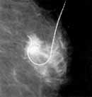 В случае, если подозрительная тень, определяемая на маммограмме, не пальпируется и не выявляется при ультразвуковом исследовании и, соответственно, диагноз не может быть верифицирован морфологически при пункции под ультразвуковым контролем, выполняется пункционная биопсия под рентгенологическим контролем - так называемая стереотаксическая пункционная биопсия.
