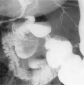 предположить облитерацию анастомоза. Одновременное исследование желудка и введение