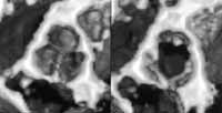 Рисунок. SONOS 5500, трансторакальный омниплановый датчик. Трёхмерная реконструкция аортального клапана в закрытом и открытом положении. |