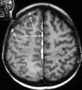 В остром периоде характеристики интенсивности сигнала такие же, как при эпидуральных гематомах. |
