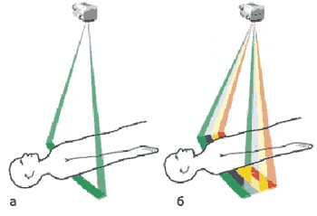 Многосрезовый сканер на рисунке (б) позволяет сканировать объект четырьмя