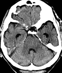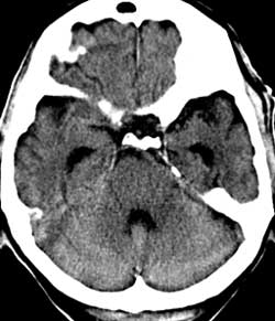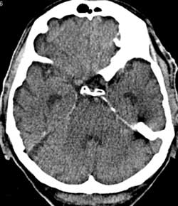 варолиевого моста накладываются артефакты от пирамиды левой височной кости.