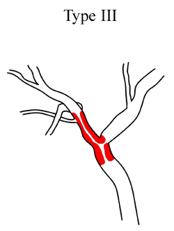 Тип III - опухоль поражает бифуркацию главного печеночного протока и один из