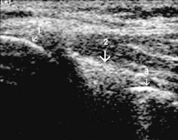 1 — латеральный мыщелок бедренной кости, 2 — задний рог латерального мениска,