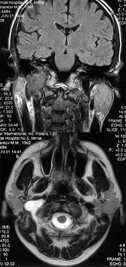 МРТ. Опухоль яремного отверстия справа.