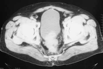 Рис. 4. Рецидив. Выбухание рецидивных масс в просвет мочевого пузыря.