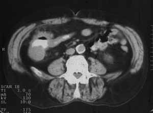 Рис. 2. Рак слепой кишки: неравномерное утолщение стенок, инфильтрация окружающей клетчатки.