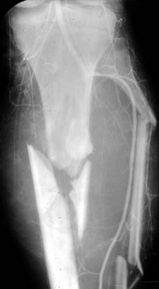 Рис. 3. Травматическое повреждение сосудов голени.