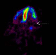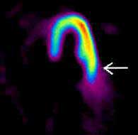 гликолиза (гибернирующий миокард). Сохраненный метаболизм глюкозы (зона указана