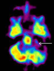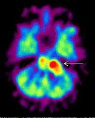 мозжечка. Очаг повышенного накопления 18F-ФДГ у пациента со злокачественной