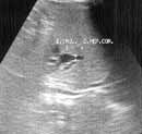 Рис. 1. Эхограмма. Атрезия внутри- и внепеченочных желчных путей. |