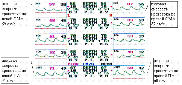 ТКД-паттернов гемодинамически значимая асимметрия кровотока по СМА и ПА. Вследствие