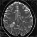 На МРТ-исследовании токсоплазмоз проявляет себя прогрессирующей мультифокальной энцефалопатией. При токсоплазмозе речь идет в типичных случаях о гранулематозных полях, которые в большинстве случаев являются небольшими — 2,0 см и менее в диаметре. На МР-томограммах эти образования выглядят гипоинтенсивными при способе Т1 и гиперинтенсивными при способе Т2, причем зона центрального некроза в кольцевидных структурах видна как участок меньшей интенсивности сигнала. Большинство таких образований при контрастировании усиливается центрально. Нередко встречаются участки кровоизлияний, обычно небольшого размера. Типичным является и наличие перифокальной зоны отека. Вышеописан-ные изменения локализуются пери- и паравентрикулярно, нередко в области пограничных кортико-медулярных структур, а также в области базальных ганглиев.