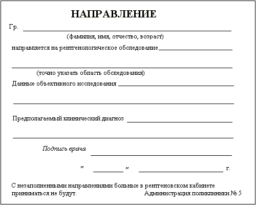 Рисунок. Бланк направления на рентгенологическое исследование.