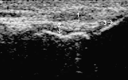 сагиттальная проекция. Наружная (малоберцовая) коллатеральная связка (1+), 2