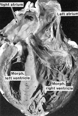 Рис. 1. Коррегированная транспозиция магистральных сосудов. Снимок взят из H. Feigenbaum “Cardiac Ultrasound” – London, 1993.