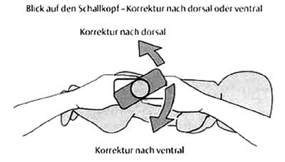 поворот датчика дорзально, надпись внизу рисунка: поворот датчика вентрально.