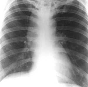 на обзорных рентгенограммах органов грудной клетки.