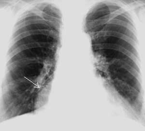 прямой ренгенограмме грудной клетки дополнительная тень в правом кардио-диафрагмальном