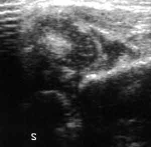 Рис. 7. Ультразвуковое изображение (Слева) и схема (Справа)